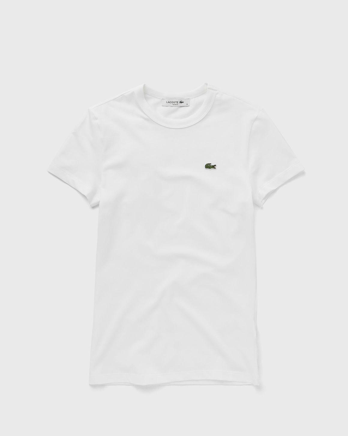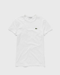 This Lacoste T-shirt is designed for everyday comfort. It has a tight cut and is made from stretch jersey. A signature crocodile on the chest completes the design. - Round neckline - Short sleeves - Embroidered logo Article Number: TF7218-001 Gender: Women Color: white Material: 93% Cotton, 7% Spandex/elastane