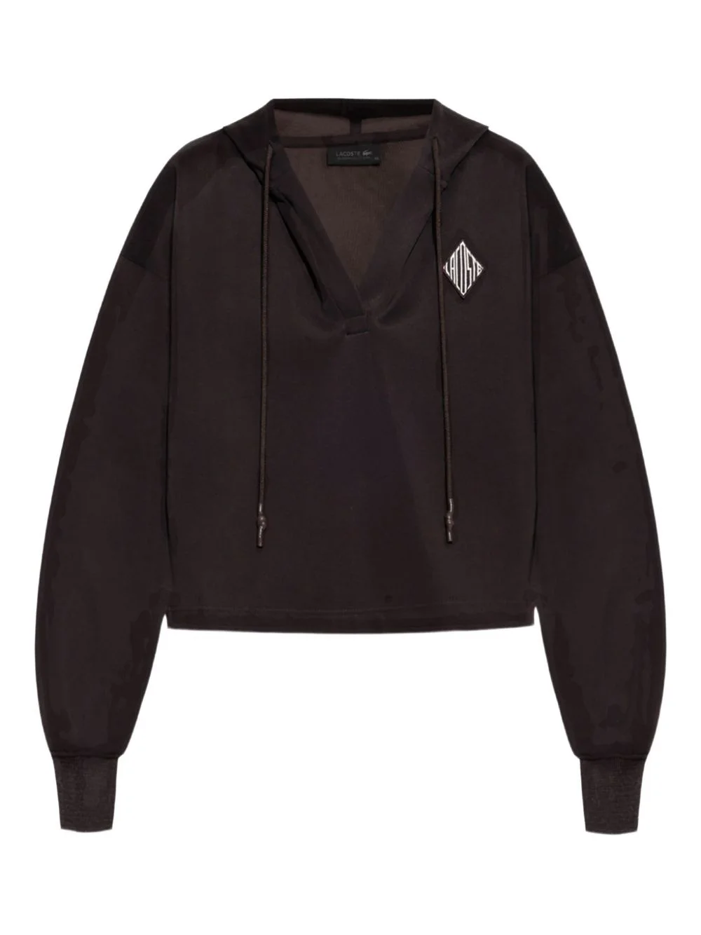 logo-patch hoodie Highlights - Chocolate brown - Drawstring hood - Long sleeves - Straight hem Imported Composition Viscose 47%, Cotton 40%, Polyamide 9%, Spandex/Elastane 4%