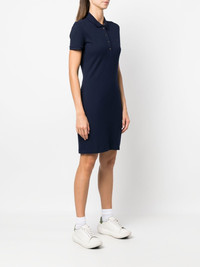 logo-patch short-sleeve polo dress marine blue cotton blend pique weave logo patch at the chest polo collar short front button fastening short sleeves straight hem Imported Composition Cotton 94%, Spandex/Elastane 6% SIZE & FIT Model measurements Height 5 ft 9 in(1.76 m) Bust/Chest 33.07 in(84 cm) Hips 34.64 in(88 cm) Waist 25.59 in(65 cm) FittingInformation This piece fits true to size. We recommend you get your regular size Cut for a slim fit Made with a mid-weight fabric