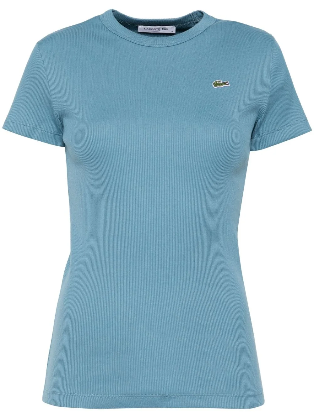 logo-patch T-shirt Highlights - Aqua blue - Ribbed knit - Crew neck - Straight hem Imported Composition Cotton 100%