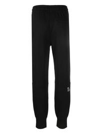 logo-print track pants black cotton blend logo print to the rear elasticated drawstring waistband two side zip-fastening pockets rear welt pocket elasticated ankles Imported Composition Cotton 77%, Polyester 18%, Elastane 5% SIZE & FIT FittingInformation Designed for a tapered fit, these trousers allow for a close fit at the waist and a loose unrestricted fit over the leg with a closer fit towards the ankle Adjust this piece’s waistband to your preference using the drawstring Made from a midweight non-stretch fabric, this piece offers minimal elasticity when worn Washing instructions Machine Wash