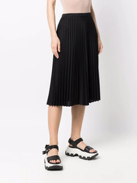 logo-waistband pleated skirt black logo waistband fully pleated elasticated waistband mid-length Imported Composition Polyester 100% SIZE & FIT Model measurements Height 5 ft 10 in(1.77 m) Bust/Chest 35.03 in(89 cm) Hips 35.03 in(89 cm) Waist 23.62 in(60 cm) FittingInformation This piece fits true to size. We recommend you get your regular size Designed for a loose fit with a close fit at the waist Made with a mid-weight non-stretch fabric Washing instructions Dry Clean Only