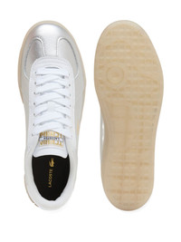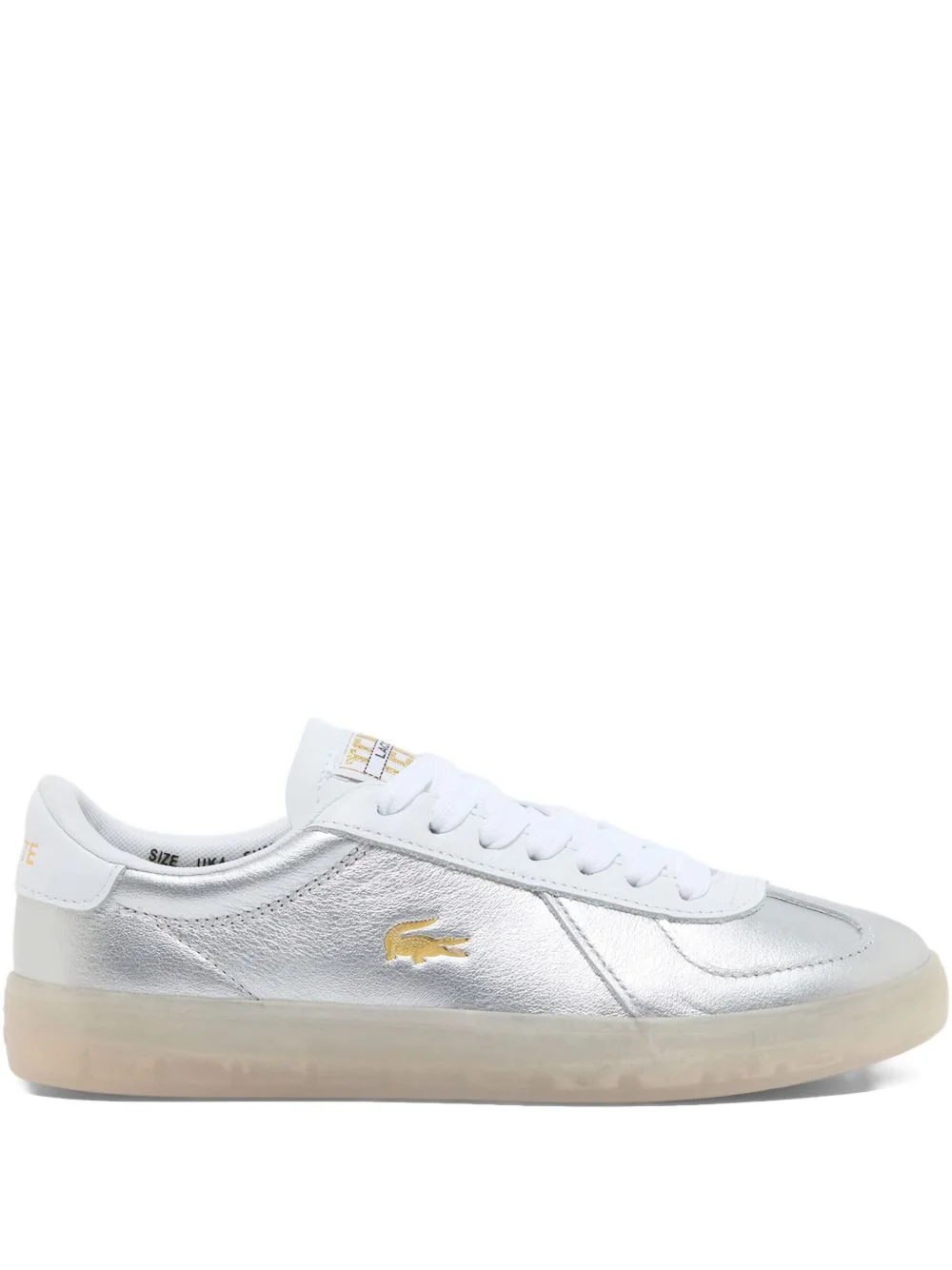 metallic leather sneakers Highlights - Silver - Leather upper - Lace-up fastening - Crocodile logo - Translucent rubber sole - Flat sole Imported Composition Lining: Cotton 50%, Recycled Polyester 27%, Polyurethane 23% Outer: Leather 100% Sole: Rubber 100%