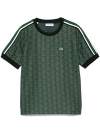 monogram-jacquard T-shirt Highlights - Dark green - Recycled polyester blend - Monogram jacquard - Crew neck - Embroidered logo at the chest - Side stripe detailing - Short sleeves - Ribbed cuffs - Straight hem Imported Composition Recycled Polyester 59%, Organic Cotton 38%, Polyamide 3%
