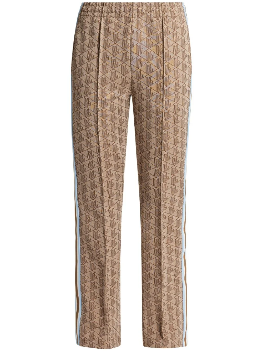 monogram-pattern track pants Highlights - Beige/light brown - Monogram pattern - Tape detailing - Embroidered logo to the rear - Pressed crease - Elasticated waistband with internal drawstring - Two side slit pockets - Straight leg Imported Composition Outer: Polyester 58%, Cotton 38%, Polyamide 4% Lining: Cotton 100% Washing instructions Read Manufacturer Guidelines
