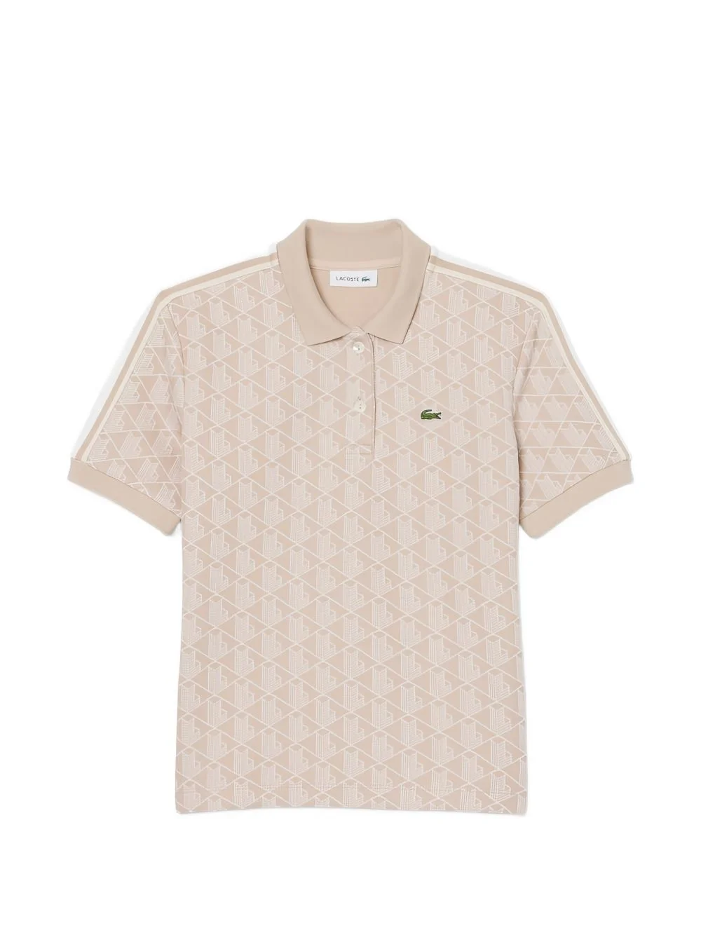 monogram-patterned polo shirt Highlights - Beige - Geometric pattern - Stripe detailing - Short sleeves - Button fastening - Polo collar Imported Composition Polyester 58%, Cotton 38%, Polyamide 4% Washing instructions Machine Wash