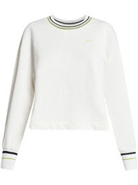 organic cotton sweatshirt Highlights - White/black/yellow - Organic cotton - Jersey texture - Crew neck - Stripe detailing - Drop shoulder - Long sleeves - Ribbed cuffs - Straight hem Made in France Composition Organic Cotton 100%