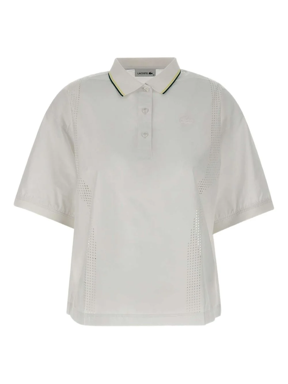 perforated short-sleeve polo shirt Highlights - White - Button placket - Perforated panel details - Contrasting collar trim - Dropped shoulders - Side vents Imported Composition Polyester 100% Washing instructions Read Manufacturer Guidelines