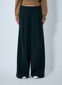 Tailored wide-leg pants with front pleats. - Mid rise - Front hook-and-eye and zip-fly fastening - Belt loops - Side slip pockets - 100% Technical Fabrication Blend. Dry clean - Color: Black - Code: HF3672 GJP