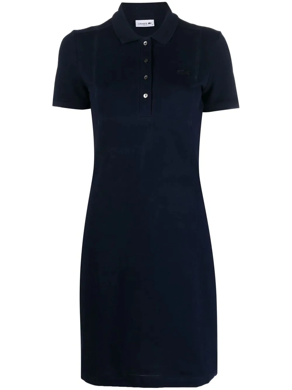 polo-collar short sleeve dress navy blue cotton blend front button fastening short sleeves straight hem mid-length Imported Composition Cotton 94%, Elastane 6% Washing instructions Machine Wash