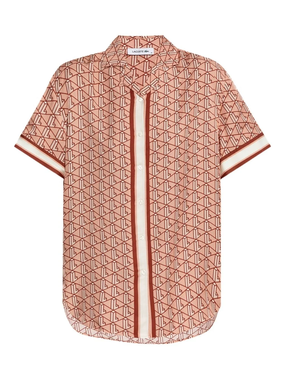 printed shirt Highlights - Coral pink - Front button fastening - Stripe trim - Camp collar - Short sleeves Imported Composition Viscose 100%