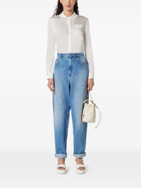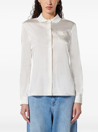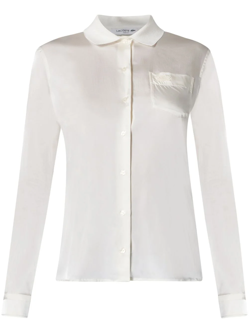 ribbed-collar shirt Highlights - White - Front button placket - Buttoned cuffs - Chest patch pocket - Logo patch at the chest Imported Composition Viscose 100%