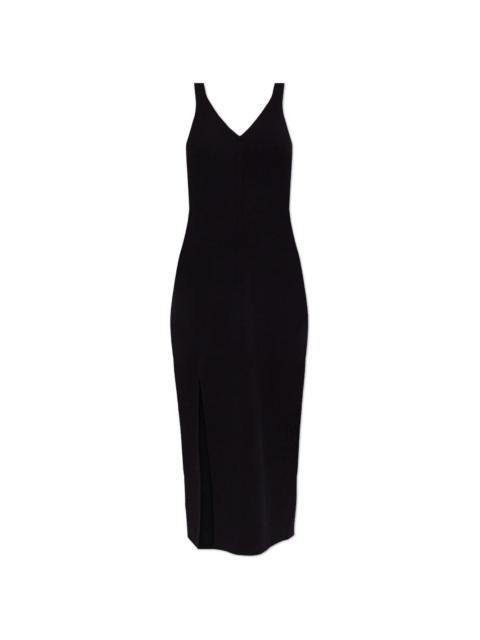 ribbed dress Highlights - Black - Pull-on style - V-neck - Sleeveless - Side slit Imported Composition Polyester 100% SIZE & FIT FittingInformation Designed for a slim fit that sits just away from the body offering a close yet comfortable fit Made with a midweight knit, this piece offers some stretch