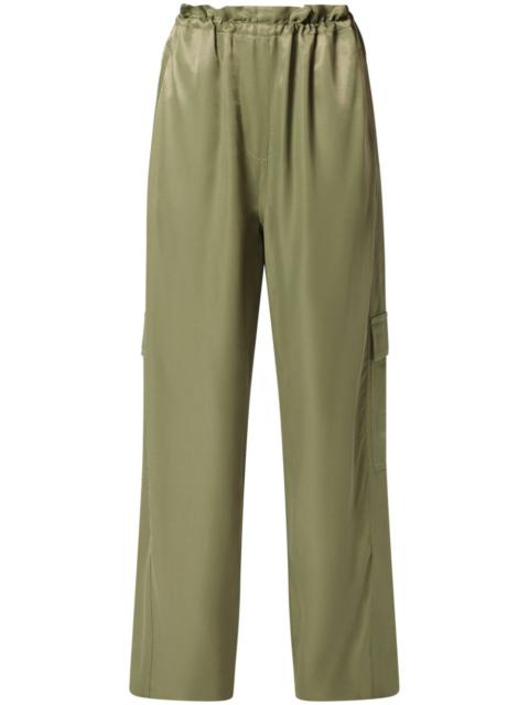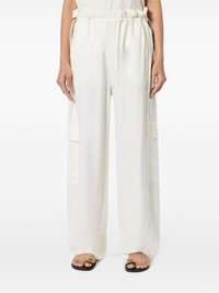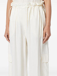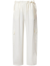 satin cargo pants Highlights - White - Elasticated waistband - Two side slash pockets - Two side cargo pockets - Two rear flap pockets Imported Composition Lining: Cotton 100% Outer: Recycled Polyester 100%, Rayon 100%
