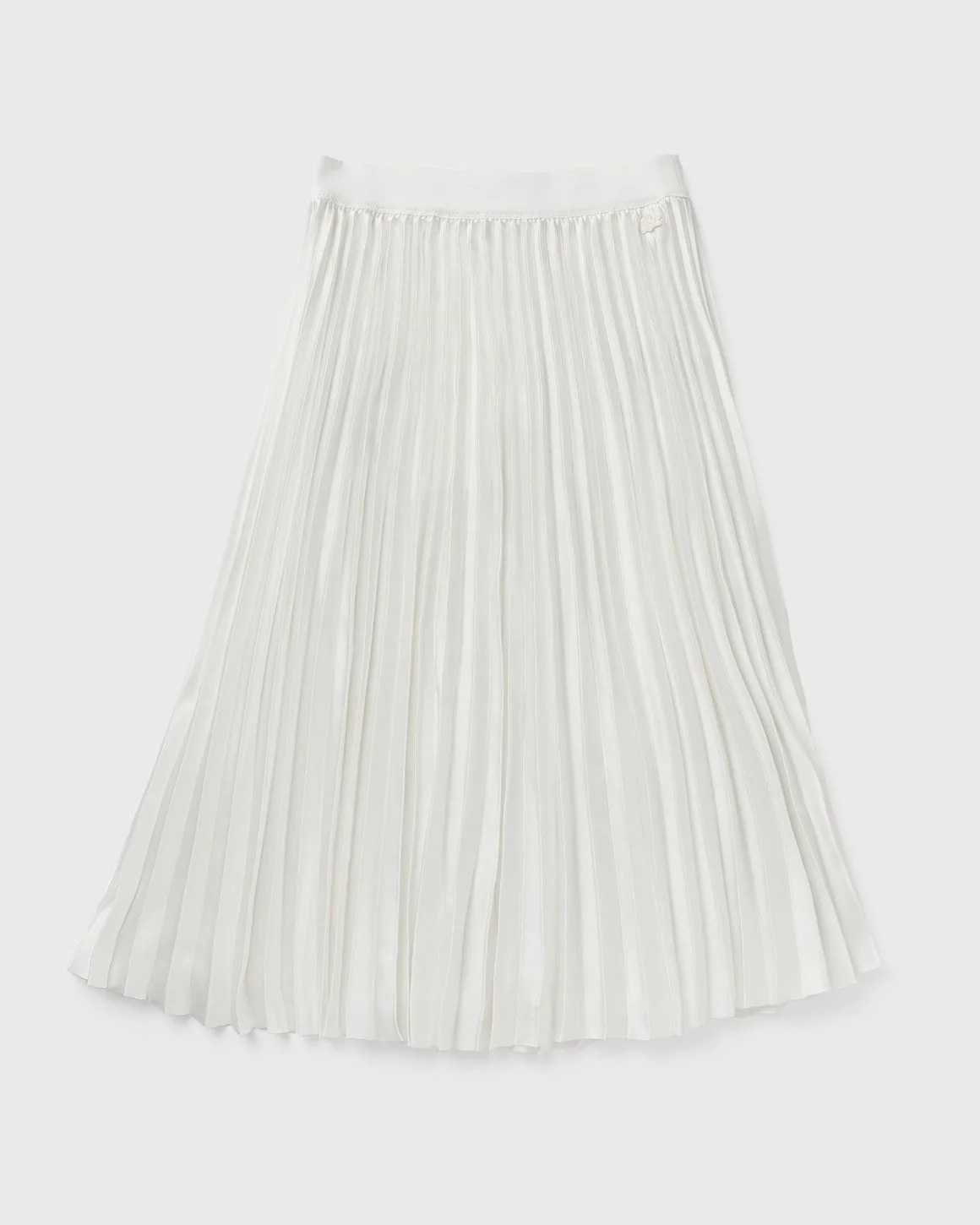 This Lacoste pleated skirt combines 90 years of fashion and sportswear expertise in an elegant, feminine design. Made from recycled, flowing satin, it brings iconic tennis pleats to everyday wear in style. The elasticated logo waistband with ribbed knit detail ensures a comfortable fit, while the color-coordinated embroidered crocodile on the waistband adds subtle branding accents. - Recycled polyester satin limits the use of new raw materials - Allover pleats - Length to below the knees - Logo waistband with ribbed knit detail - Color-coordinated embroidered crocodile on the waistband Article Number: JF5605-70V Gender: Women Color: Flour Material: 92% Polyester, 8% Spandex/elastane