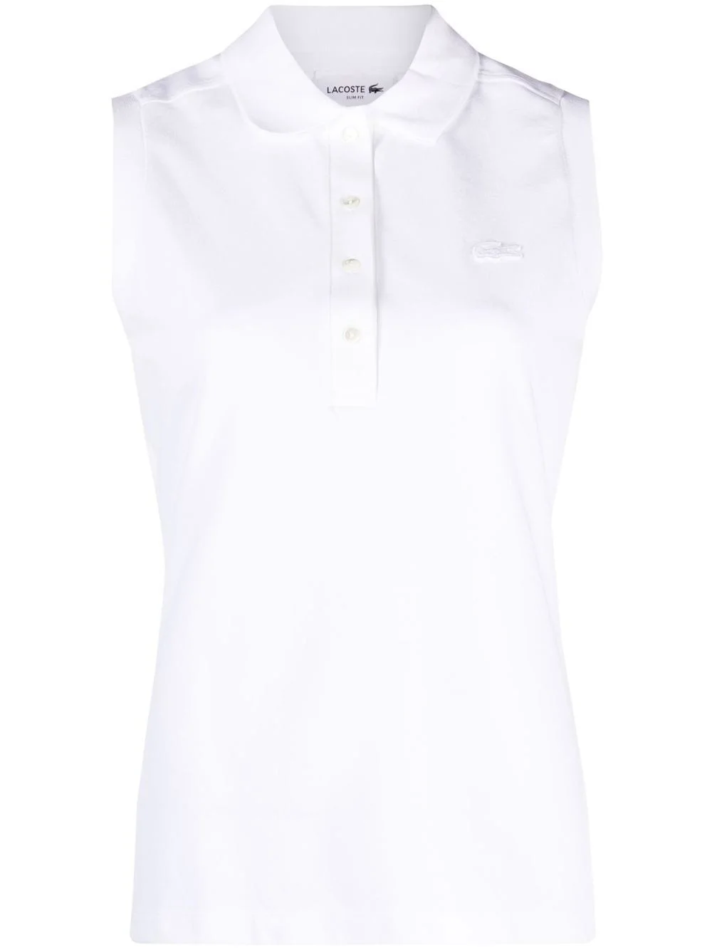 sleeveless cotton polo shirt Highlights - White - Stretch-cotton - Applique logo - Polo collar - Front button placket - Sleeveless Imported Composition Cotton 100% SIZE & FIT Model measurements Height 5 ft 10 in(1.78 m) Bust/Chest 31.49 in(80 cm) Hips 35.03 in(89 cm) Waist 23.62 in(60 cm) FittingInformation This piece fits true to size. We recommend you get your regular size Cut for a slim fit Made with a mid-weight fabric Washing instructions Machine Wash