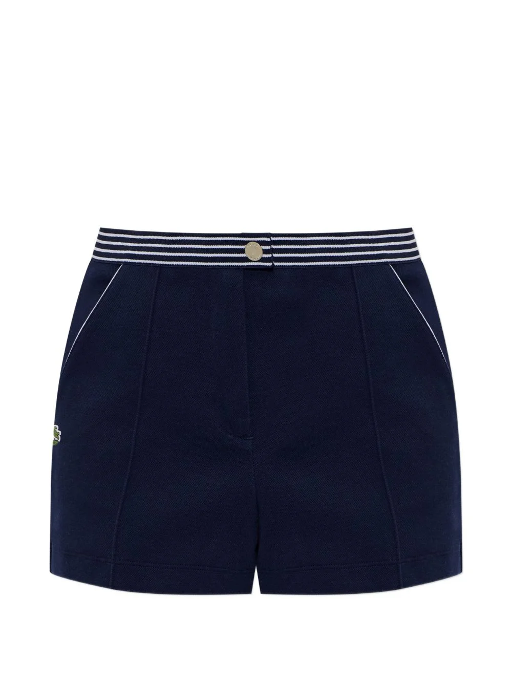 striped-edge shorts Highlights - Navy blue - Striped waistband - Button closure - Logo applique Made in France Composition Outer: Cotton 86%, Polyamide 14%