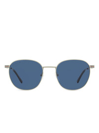 striped oval-frame sunglasses Highlights - Light grey - Oval frame - Striped detail - Logo detail - Acetate temple tips - Nose pads - These glasses come with a protective case. Imported Composition Metal 100%, Plastic 100% SIZE & FIT Measurement Arm Length 5.7 in(14.5 cm) Bridge Width 0.78 in(2 cm) Lens Diameter 2.04 in(5.2 cm)
