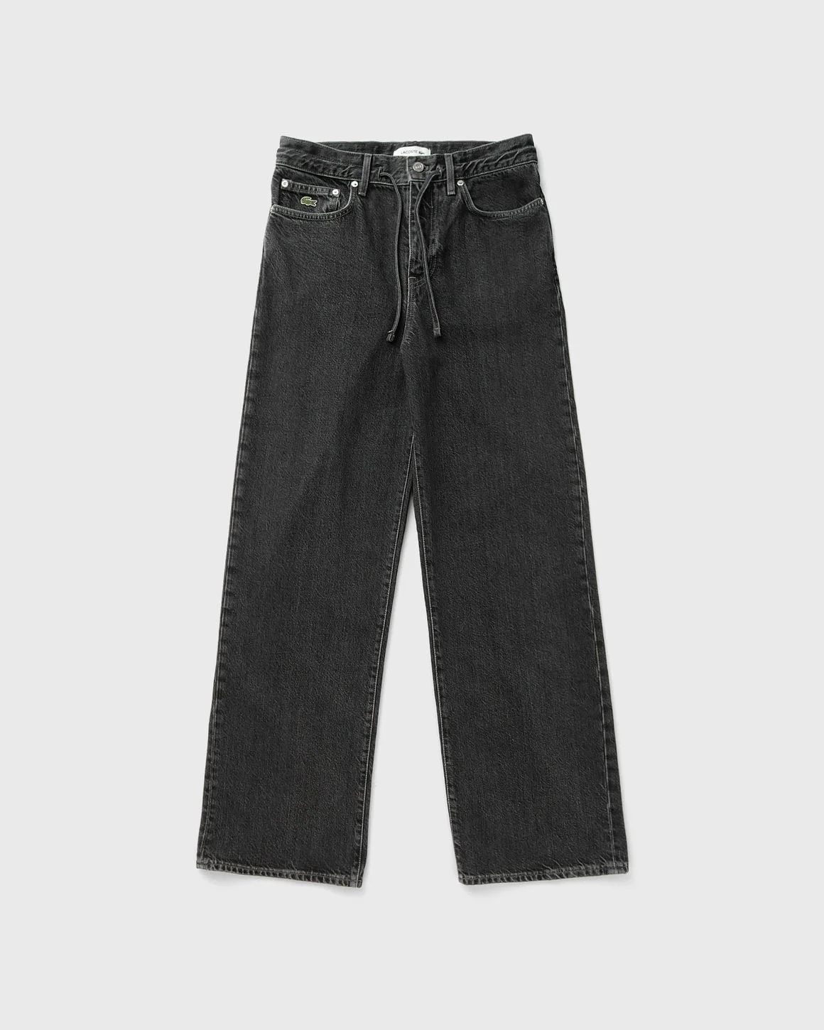 These Lacoste 5-pocket jeans embody 90 years of French elegance. They are made from organic cotton with a unique wash, giving each pair an individual color shade. The wide, comfortable fit and wide legs give them a relaxed, modern look. - Organic cotton denim - Wide, comfortable cut, wide legs - Color-coordinated denim drawstring at the waistband - Unique washing technique for distinctive shades - Embroidered crocodile on coin pocket and back pocket Article Number: HF0206-6NM Gender: Women Color: BLACK WASHED Material: 100% Cotton