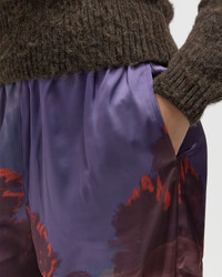 With these pants, Lacoste once again focuses on striking sportswear style. They are made of flowing satin, have a loose cut, and feature a landscape motif inspired by Rene Lacoste's beloved Chantaco in the French Basque Country. The design is rounded off by the embroidered signature crocodile, which gives the model a subtle but unmistakable Lacoste character. - Polyester satin - Oversized, wide legs - All-over landscape motif - Elastic waistband with drawstring - Embroidered crocodile on the waistband Article number: HF6384-ADI Gender: women Color: GLOBE/PORT 0-NEVA PURPLE- Material: 100% Polyester
