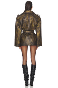 - Self: 50% polyester, 50% polyurethane Lining: 100% cotton - Made in Georgia - Hand wash cold - Front snap button closure - Heavyweight faux leather fabric - Waistbelt tie accent - Item not sold as a set - Revolve Style No. LBOK-WO20 - Manufacturer Style No. LBFW25TCVLKH02