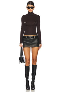 - Self: 50% polyester 50% polyurethane Lining: 100% cotton - Made in Georgia - Dry clean only - Hidden back zipper closure - Optional belt at waist - Low-rise fit - Vegan faux leather fabric - Skirt measures approx 10" in length - Revolve Style No. LBOK-WQ11 - Manufacturer Style No. LBFW24SKVLBK02