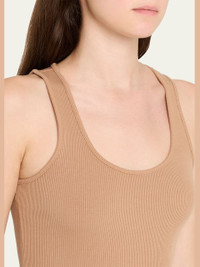 L'Agence "Adira" tank top in ribbed knit Scoop neckline Sleeveless Easy fit Hem sits at the hip Pullover style Cotton/modal/spandex Made in USA