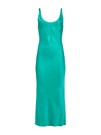 The definition of day to night versatility is the Akiya tank dress—minimal, flattering, and back in bright jade. • Bias-cut satin • Deep scoopneck • No closures Style No. 61120PLY-BRJA DETAILS & FIT - Model Details: Height 5'10" | Bust 34" | Waist 24" | Hips 35" | Wearing Size XS - About 53" From Shoulder to Hem MATERIALS & CARE Composition - 55% Rayon 45% Viscose - Imported Care - Dry clean only - Do not wash - No bleach - No tumble dry - Low iron if needed