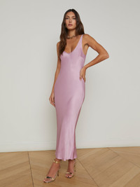 The definition of day-to-night versatility is the Akiya tank dress—minimal, flattering, and back in mauve mist. • Bias-cut satin • Deep scoopneck • No closures Style No. 61120PLY-MVMS DETAILS & FIT - Model Details: Height 5'10" | Bust 32" | Waist 24" | Hips 34.5" | Wearing Size XS - About 53" From Shoulder to Hem MATERIALS & CARE Composition - 55% Rayon 45% Viscose - Imported