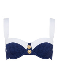 A sweet balconette bikini top, made sweeter with a subtle houndstooth print and decorative gold buttons. • Water-safe textured boucle fabric • Underwire • Back hook closure Style No. LG5AM84-MWGB DETAILS & FIT - Model Details: Height 5'10" | Bust 32" | Waist 24" | Hips 34.5" | Wearing Size XS MATERIALS & CARE Composition - 93% Nylon 7% Elastane - Imported Care - Hand wash
