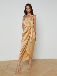 The Amilia dress is all about fluid drape and movement. An adjustable wrap silhouette flatters every figure. • 100% silk charmeuse • Adjustable straps • Wrap front • Side waist tie Style No. S61370CLW-LATT DETAILS & FIT - Model Details: Height 5'9.5" | Bust 32" | Waist 24" | Hips 35" | Wearing Size 2 - About 49" From Shoulder to Hem MATERIALS & CARE Composition - 100% Silk - Imported Care - Dry clean only - Do not wash - No bleach - No tumble dry - Low iron if needed