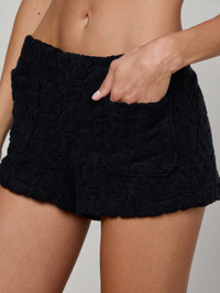 Style No. LG6WC61-BLAC DETAILS & FIT - Model Details: 5'10" | Bust 32” | Waist 23.5” | Hips 34.5” | Wearing Size XS - Inseam: 2" MATERIALS & CARE Composition - 100% Polyester - Imported