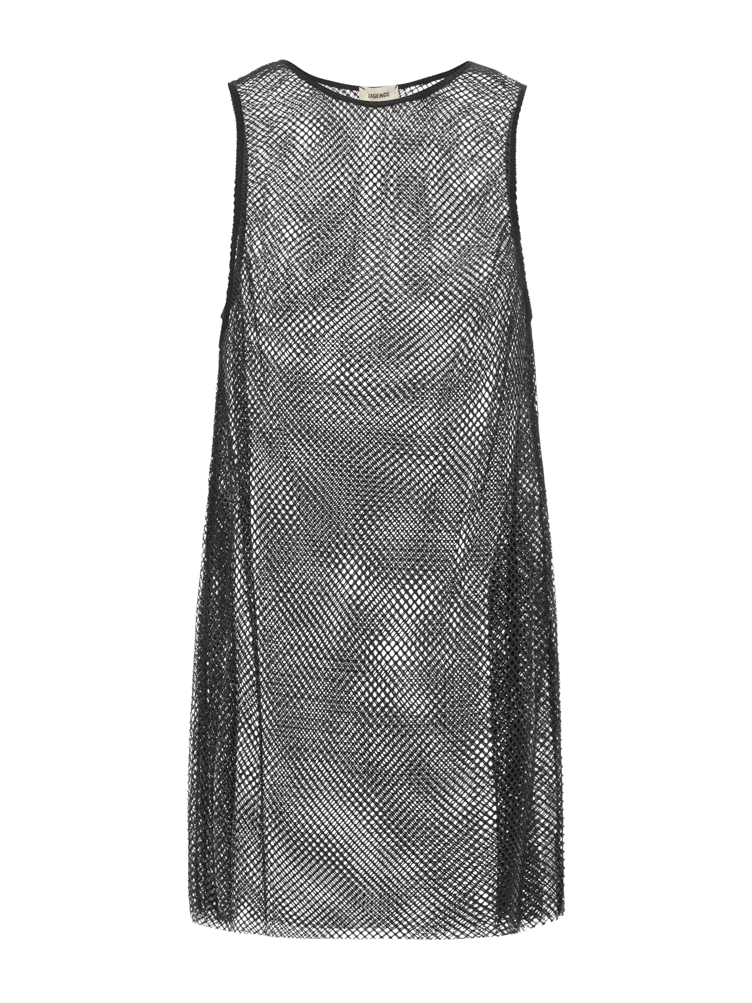 Our gorgeous new swimsuit coverup is in a mesh minidress that drapes effortlessly from shoulder to mid-thigh hem. Perfect for showcasing swimsuits, she's detailed with subtle black crystal embellishments that add unexpected glamour. Slip Angela over your favorite swimsuit for post-swim cocktails. Style No. LG4MC37-BLAC DETAILS & FIT - Model Details: Height 5'10" | Bust 32" | Waist 24'' | Hips 34.5'' | Wearing Size XS - About 33" From Shoulder to Hem MATERIALS & CARE Composition - 97% polyester 3% Elastane - Imported Care - Dry clean