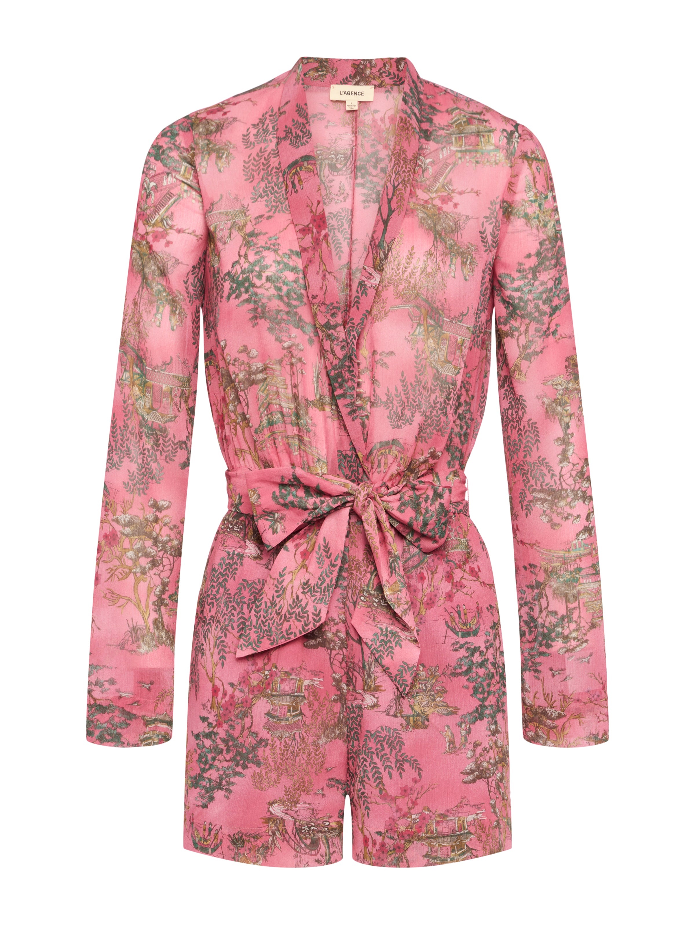 Pack it for every getaway and wear it all spring to summer. The Arabell romper is a L’AGENCE warm weather essential. • Crinkle poly chiffon • Lined shorts • Snap front • Slant pockets • Tie belt Style No. 7115KEU-MMSP DETAILS & FIT - Model Details: Height 5'10.5" | Bust 33" | Waist 24" | Hips 34" | Wearing Size 2 - About 17.75" From Shoulder to Hem - Sleeve Length: 24" MATERIALS & CARE Composition - 100% Polyester - Imported