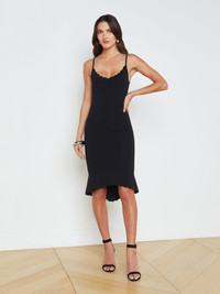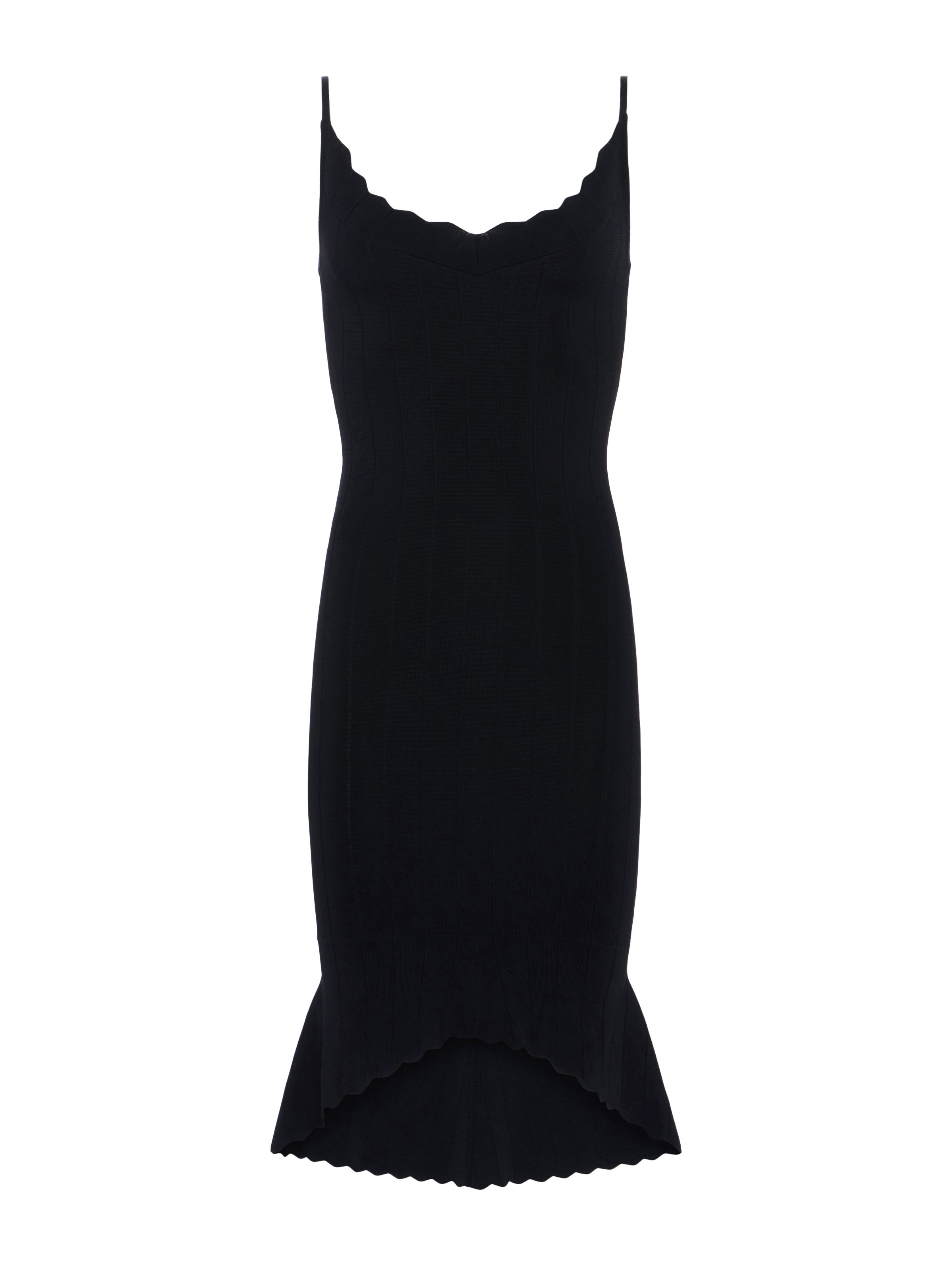 Introducing our newest little black dress—ultra chic, endlessly wearable. In a refined rib-knit that offers complete freedom of movement, our Asa dress hugs and smooths the figure, creating a super-sleek silhouette. Scalloped scoopneck and flared high-low hem add a flirtatious finish. Slip on a pair of heels, then dance the night away. Style No. 80014NXC2-BLAC DETAILS & FIT - Model Details: Height 5'10" | Bust 32" | Waist 24'' | Hips 34.5'' | Wearing Size XS - About 30.5" From Shoulder to Hem MATERIALS & CARE Composition - 60% Rayon 38% Nylon 2% Spandex - Imported