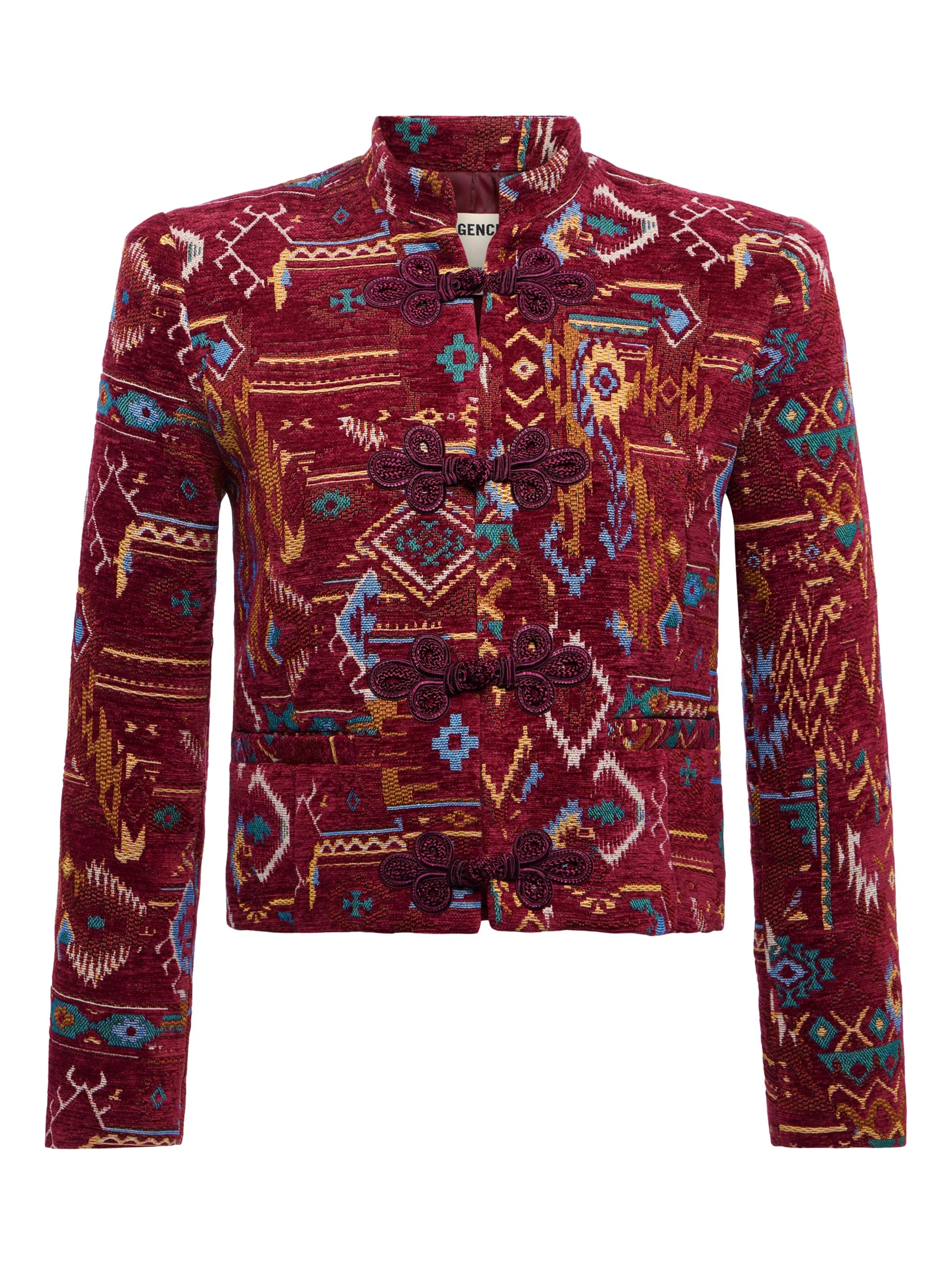 Style No. 1966KQD-GETA DETAILS & FIT - Model Details: Height 5'9.5" | Bust 34" | Waist 24" | Hips 34" | Wearing Size 2 - About 20.25" From Shoulder to Hem - Sleeve Length: 22.8" MATERIALS & CARE Composition - 100% Polyester - Imported Care - Dry clean only