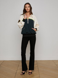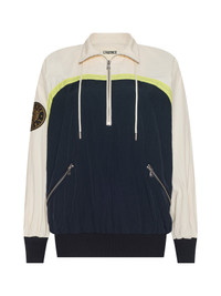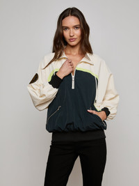 Sporty meets chic in the Aurelia nylon windbreaker. With a relaxed fit and bold stripe detail, this is athleisure done right. • Crepe nylon with a water-repellent finish • Half zip closure • Zip pockets • Ribbed cuffs and hem Style No. 1929NWB-BCRL DETAILS & FIT - Model Details: Height 5'10" | Bust 32" | Waist 23.5" | Hips 34.5"| Wearing Size XS - About 26.6" From Shoulder to Hem - Sleeve Length: 31.6" MATERIALS & CARE Composition - 100% Nylon - Imported
