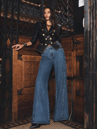 An incomparably chic, on-trend fit, new to the Fall ’24 Collection. • Premium all-cotton denim • High-rise wide leg • 5-pocket design • Seam detailing • Zip fly and button closure • 33” inseam Style No. 2938YRO-GLND DETAILS & FIT - Model Details: Height 5'10" | Bust 32" | Waist 24'' | Hips 34.5'' | Wearing Size 25 - Rise: 10.5" - Inseam: 33" - Leg Opening: 29" MATERIALS & CARE Composition - 100% Cotton - Made in Los Angeles Care - Machine wash