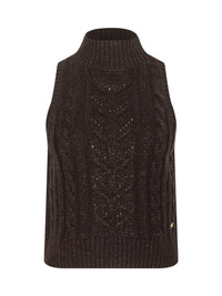 Style No. 8950TTN2-DABR DETAILS & FIT - Model Details: Height 5'10" | Bust 32" | Waist 24" | Hips 34.5" | Wearing Size XS - About 18.2" From Shoulder to Hem MATERIALS & CARE Composition - 30% Acrylic 30% Nylon 26% Wool 9% Polyester 5% Metallic - Imported Care - Dry clean only - Do not wash - No bleach - No tumble dry - Cool iron