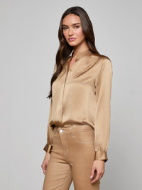 Style No. 4490CLW-CHAA DETAILS & FIT - Model Details: Height 5'10" | Bust 32" | Waist 23.5" | Hips 34.5" | Wearing Size XS - About 26.2" From Shoulder to Hem - Sleeve Length: 23.8" MATERIALS & CARE Composition - 100% Silk - Imported Care - Dry clean only - Do not wash - No bleach - No tumble dry - Low iron if needed