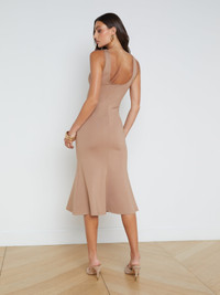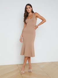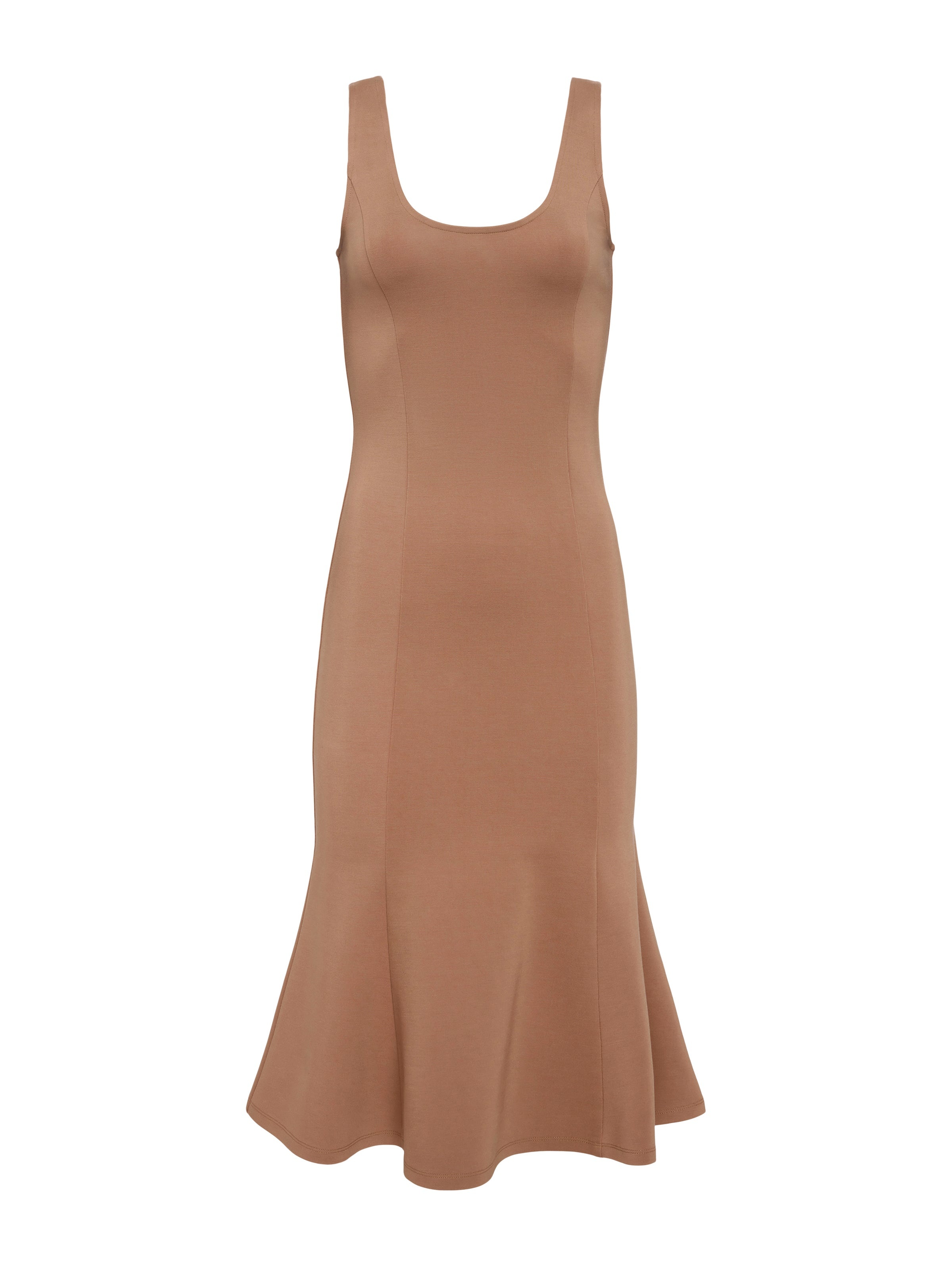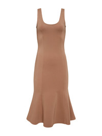With a structured mermaid silhouette, our newest midi dress belongs in your everyday to occasion rotation. The supple light brown cappuccino ponte knit of the Bisous midi dress slims and smoothes the figure. A flattering scoopneck and flared hem add feminine touch. Keep the focus on the dress with a simple, slim heel. Style No. S61375APT2-CAPU DETAILS & FIT - Model Details: Height 5’9.5" | Bust 32" | Waist 24" | Hips 35" | Shoe 8 | Wearing Size XS - About 44.5" From Shoulder to Hem MATERIALS & CARE Composition - 66% Rayon 30% Nylon 4% Spandex - Imported Care - Dry clean only