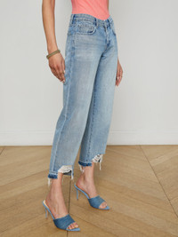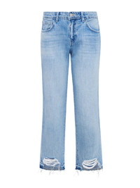 Our cropped stovepipe jean is back with a lower rise. Now in a faded light blue wash and distressed hem. • 100% cotton • Low-rise cropped straight leg • 5-pocket design • Zip fly and button closure Style No. 2904YROD-ALBE DETAILS & FIT - Model Details: Height 5'9" | Bust 32" | Waist 24" | Hips 34" | Wearing Size 25 - Rise: 8.5" - Inseam: 26" - Leg Opening: 15" MATERIALS & CARE Composition - 100% Cotton - Made in Los Angeles Care - Machine wash