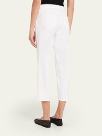 L'Agence "Blaine" straightleg jeans in crisp white, rigid denim Approx. 26" inseam Lowrise; sits high on the hip Fivepocket style Slim fit Cropped length Button/zip fly; belt loops Cotton Machine wash Made in USA