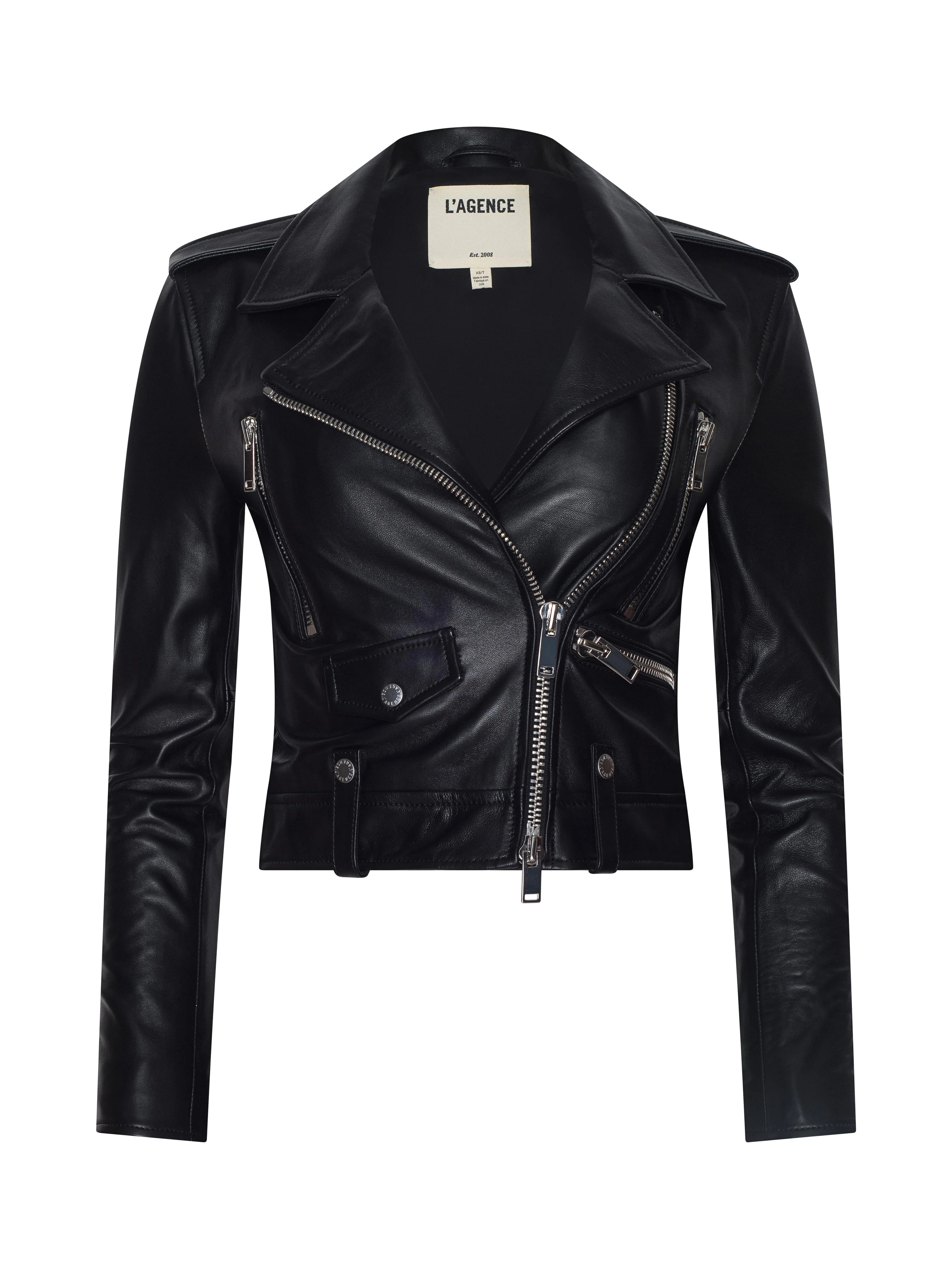 Style No. 10022LMT-BLAC DETAILS & FIT - Model Details: Height 5'9.5" | Bust 34" | Waist 24" | Hips 34" | Wearing Size XS - About 19.2" From Shoulder to Hem - Sleeve Length: 23.3" MATERIALS & CARE Composition - 100% Lambskin - Imported Care - Do not wash - Do not bleach - Do not tumble dry - Do not iron - Professional leather dry clean only