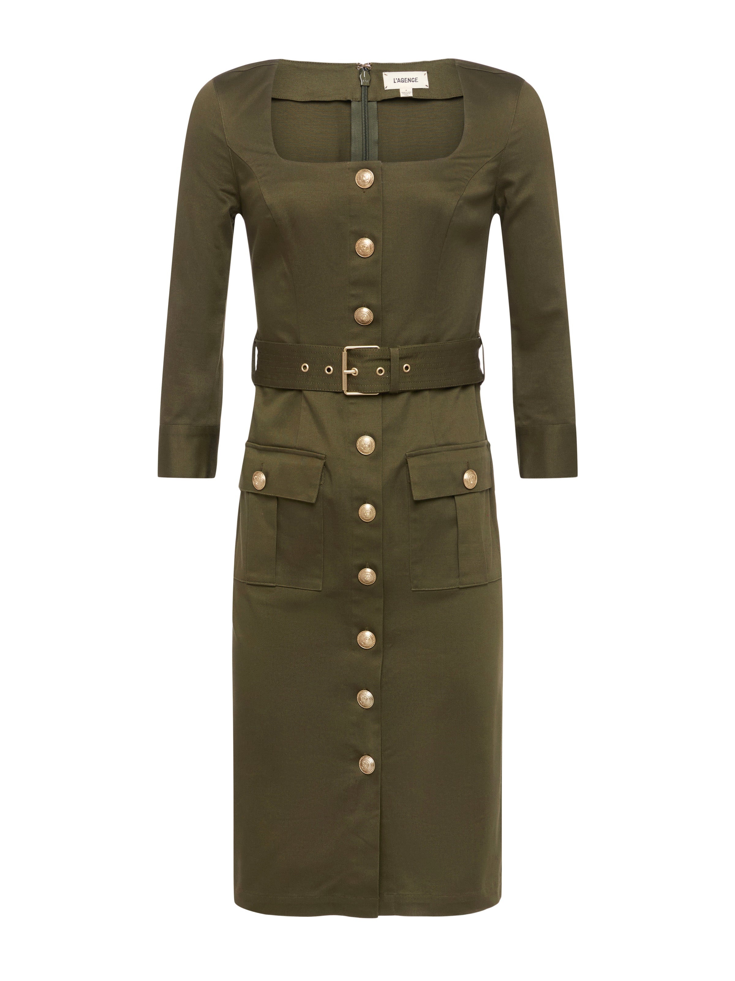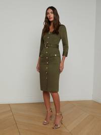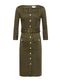 Everyone’s favorite desk-to-dinner dress has been updated with three-quarter sleeves. • Stretch cotton sateen • Structured fit • Flap pockets • 3/4 sleeves • Embossed dome button closures Style No. 61514CTB2-IVGN DETAILS & FIT - Model Details: Height 5'10" | Bust 32" | Waist 24" | Hips 34.5" | Wearing Size 2 - About 42.25" From Shoulder to Hem - Sleeve Length: 18.75" MATERIALS & CARE Composition - 97% Cotton 3% Spandex - Imported