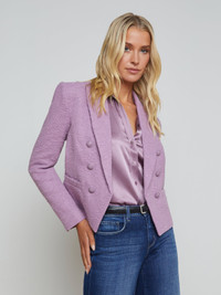 Our bestselling open-front Brooke features a flattering tapered fit, now offered in a beautiful wisteria with coordinating paisley lining. • Cotton-blend tweed • Contrast lining • No closures • Strong shoulders • Welt pockets • Tonal embossed dome buttons Style No. S1626FQP-WFPP DETAILS & FIT - Model Details: Height 5'9" | Bust 32" | Waist 24" | Hips 34" | Wearing Size 2 - About 22.75" From Shoulder to Hem - Sleeve Length: 24.3" MATERIALS & CARE Composition - 90% Cotton 10% Polyester - Imported