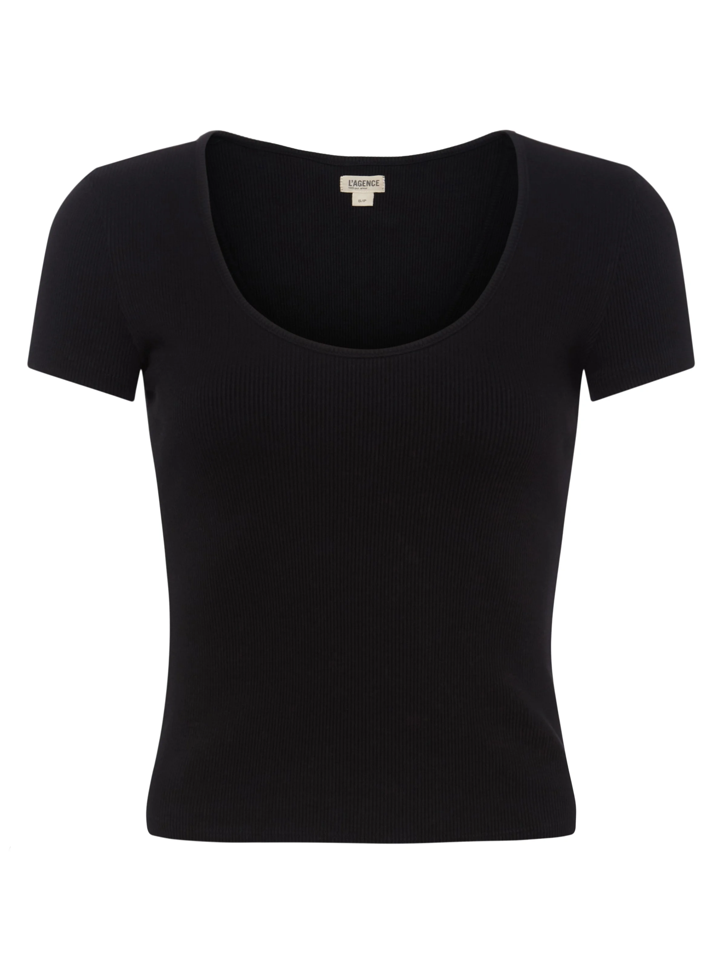 Style No. 5816CMR-BLAC DETAILS & FIT - Model Details: Height 5'8" | Bust 32" | Waist 24.5" | Hips 34" | Wearing Size XS - About 21" From Shoulder to Hem - Sleeve Length: 5.5" MATERIALS & CARE Composition - 47% Cotton 47% Modal 6% Spandex - Made in Los Angeles Care - Hand wash