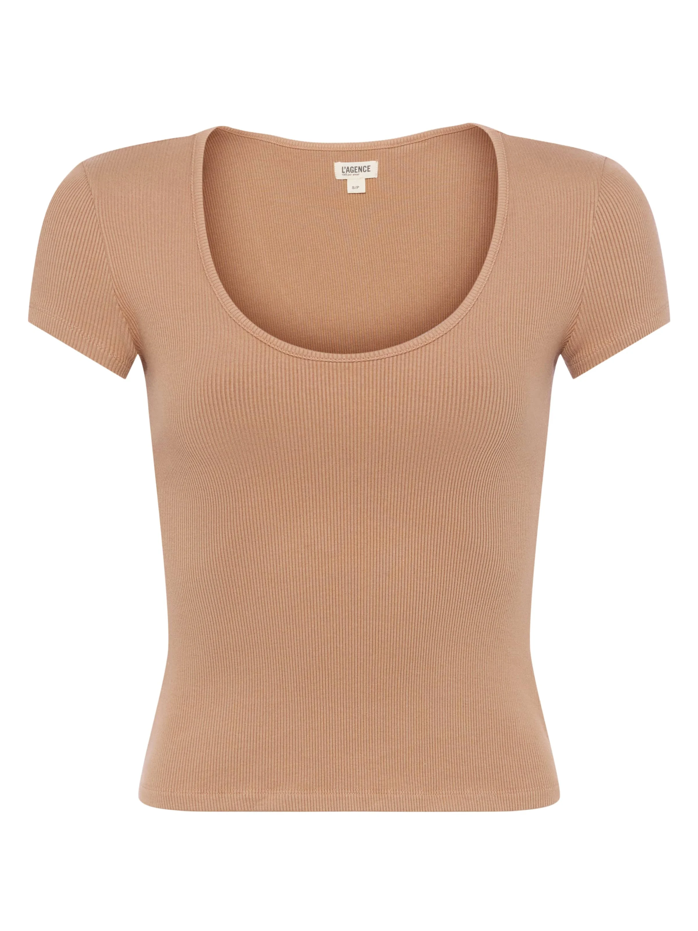 Style No. 5816CMR-CISW DETAILS & FIT - Model Details: Height 5'8" | Bust 32" | Waist 24.5" | Hips 34" | Wearing Size XS - About 21" From Shoulder to Hem - Sleeve Length: 5.5" MATERIALS & CARE Composition - 47% Cotton 47% Modal 6% Spandex - Made in Los Angeles Care - Hand wash