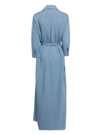 Cameron linen-blend shirt dress Highlights - Cornflower blue - Linen blend - Classic collar - V-neck - Two chest flap pockets - Detachable and adjustable waist belt - Belt loops - Ankle-length - Asymmetric hem Imported Composition Linen/Flax 55%, Viscose 45% Washing instructions Dry Clean Only