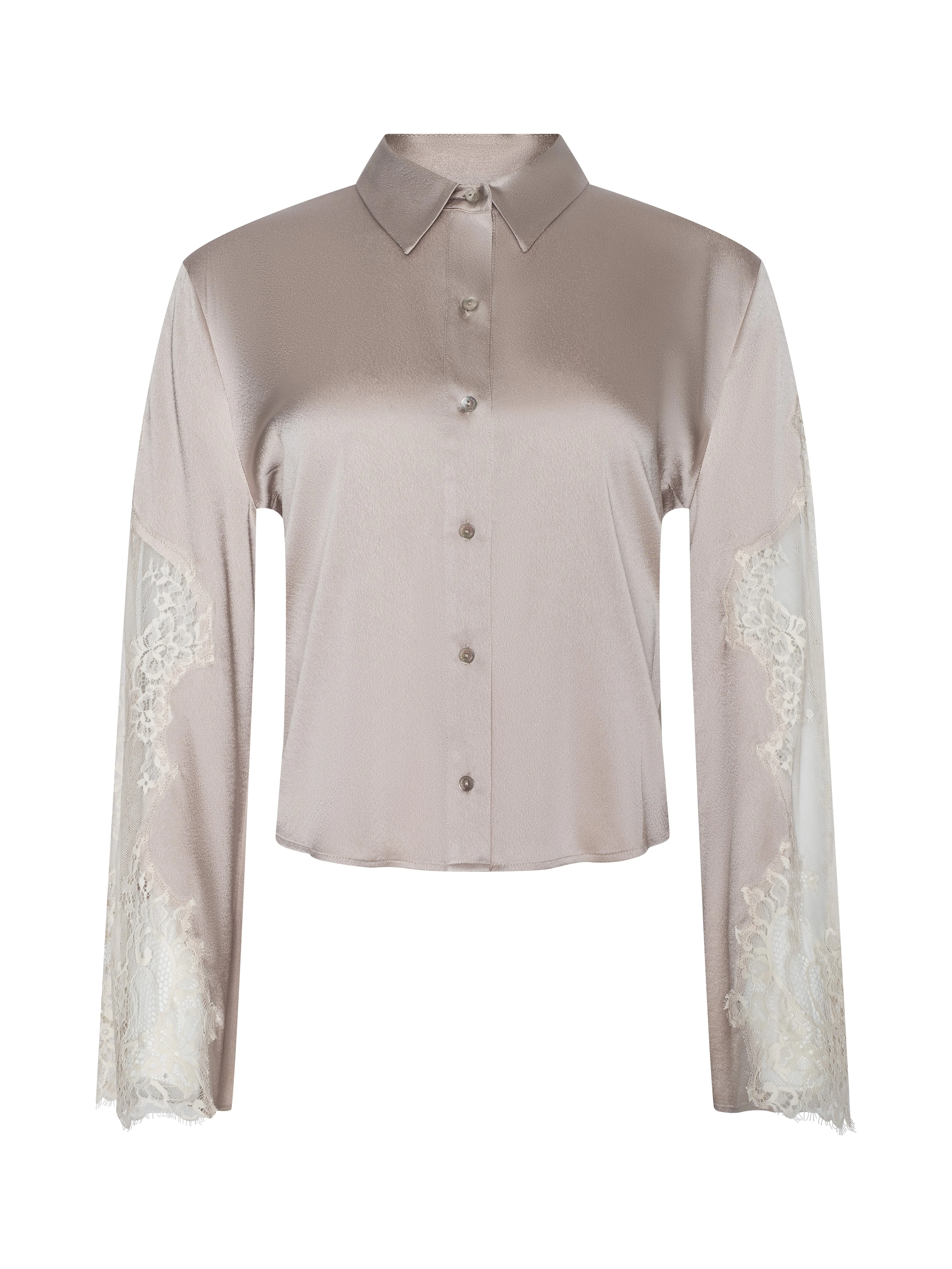 Style No. 40787CES-FEGR DETAILS & FIT - Model Details: Height 5'9.5" | Bust 32" | Waist 24" | Hips 35" | Wearing Size XS - About 20.6" From Shoulder to Hem - Sleeve Length: 22.5" MATERIALS & CARE Composition - 100% Polyester - Imported Care - Dry clean only - Do not wash - No bleach - No tumble dry - Low iron if needed